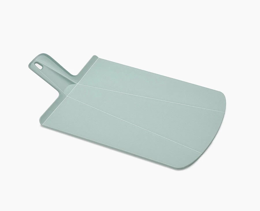- When the handle is squeezed, the sides of the board fold up forming a chute down which chopped food or waste can be neatly guided