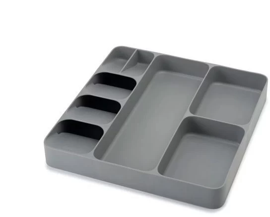 This unique tray combines five overlapping compartments for storing cutlery with three deep-sided compartments for holding utensils and gadgets.
