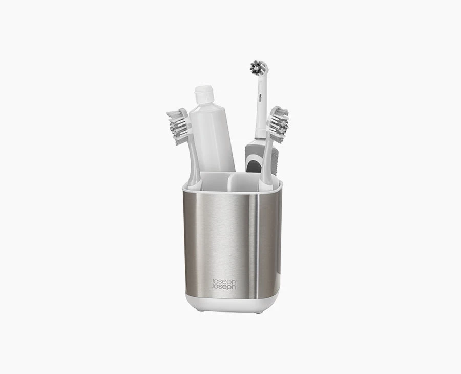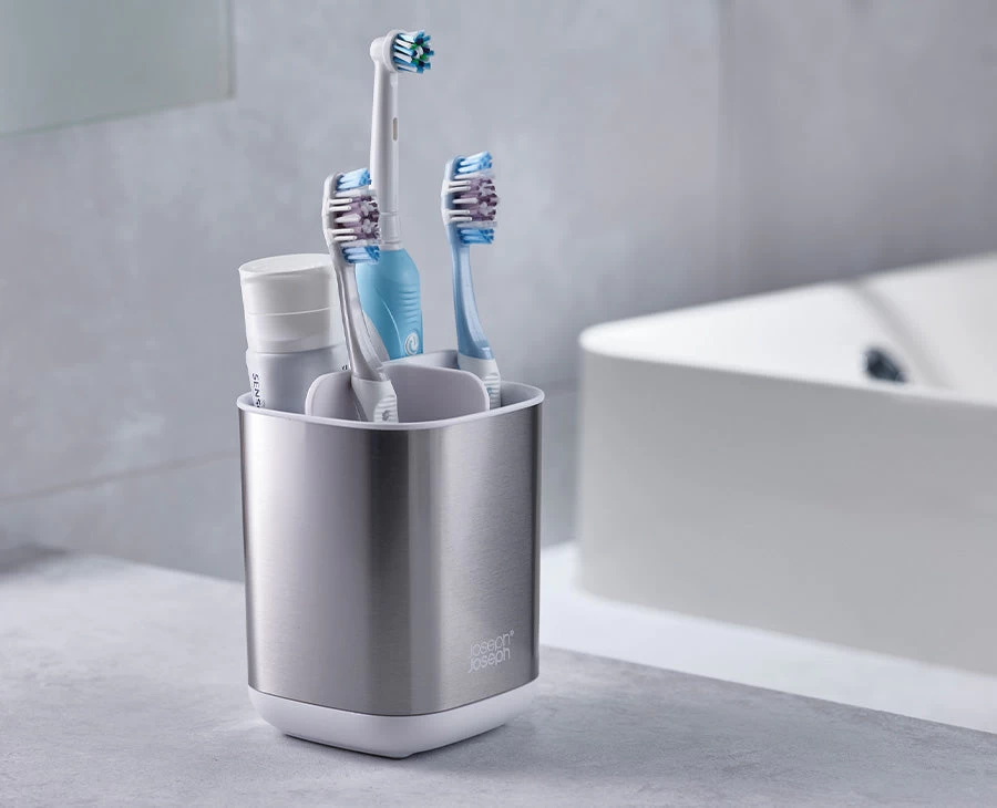 These compact toothbrush caddies are divided into different sections to provide organised storage for a variety of oral care items, such as manual or electric toothbrushes and toothpaste tubes.