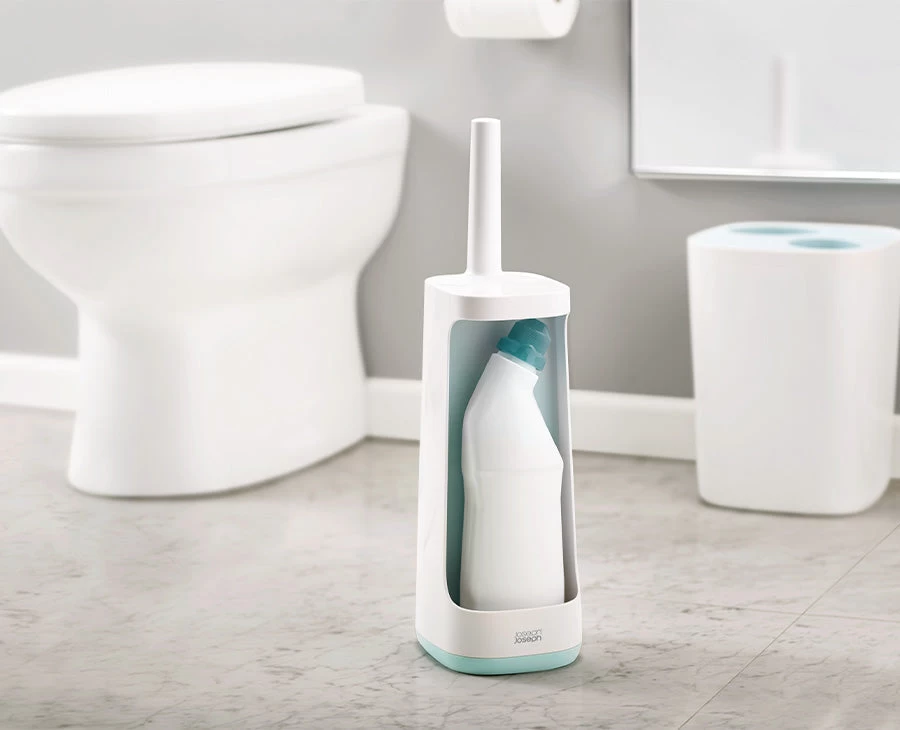 This revolutionary toilet brush comes with a handy caddy so you can neatly store bleach bottles or aerosols out of sight.