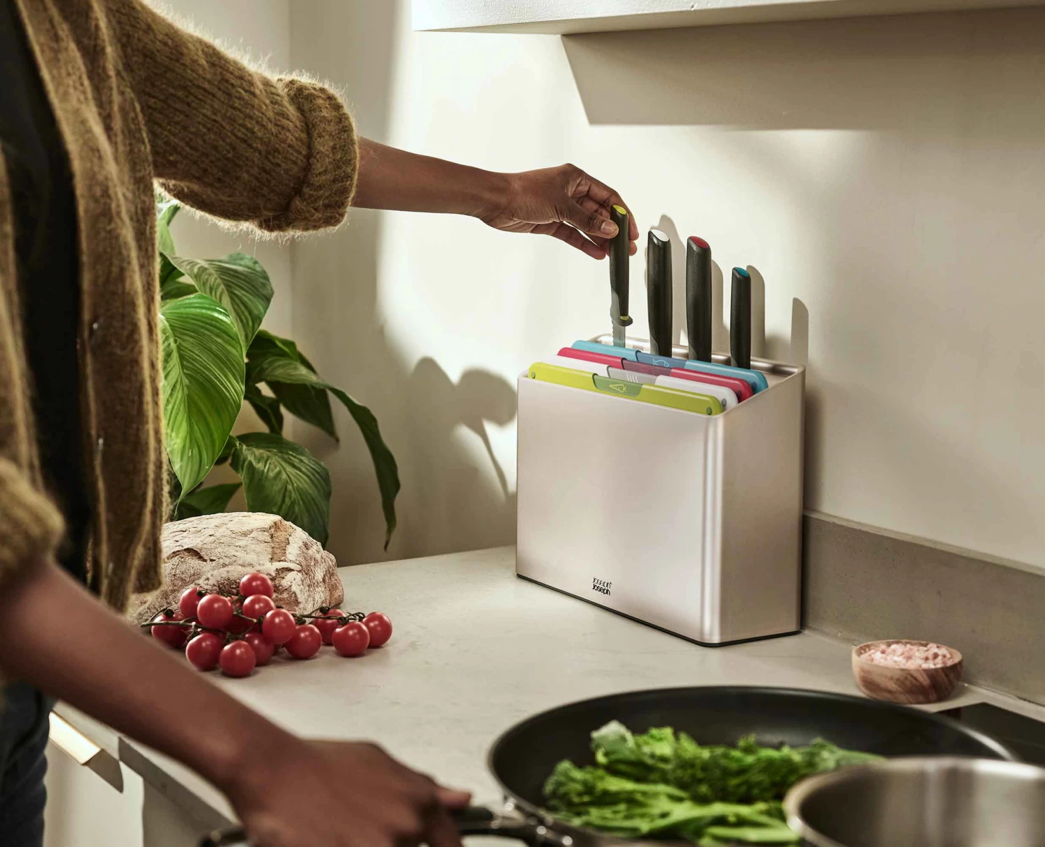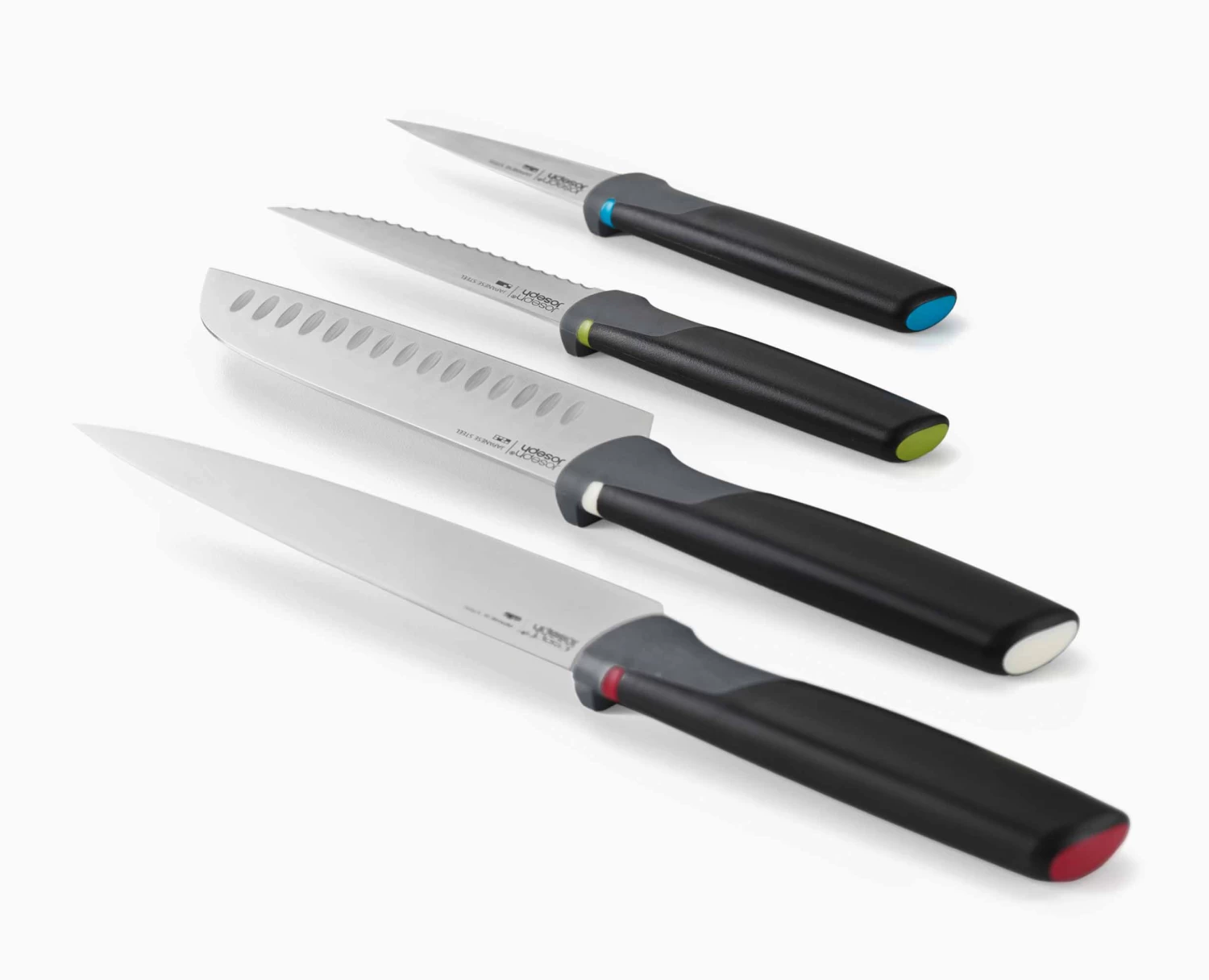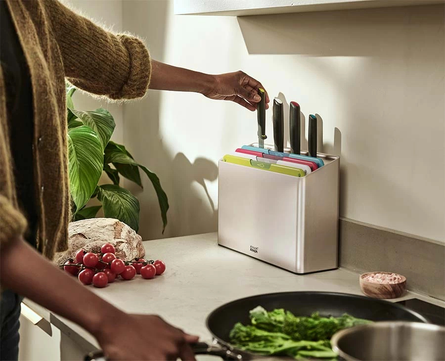 - 4 food-specific, non-slip chopping boards plus 4 knives