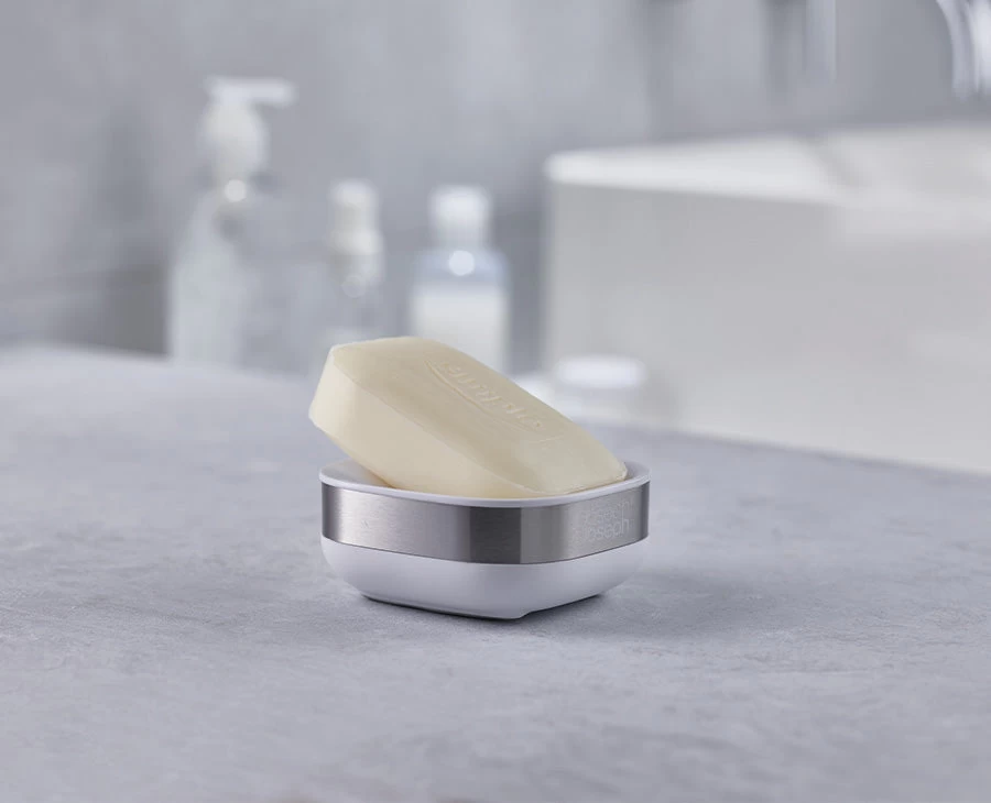 This stylish, compact design features an angled base, which means it can hold a full-size soap bar in less space.