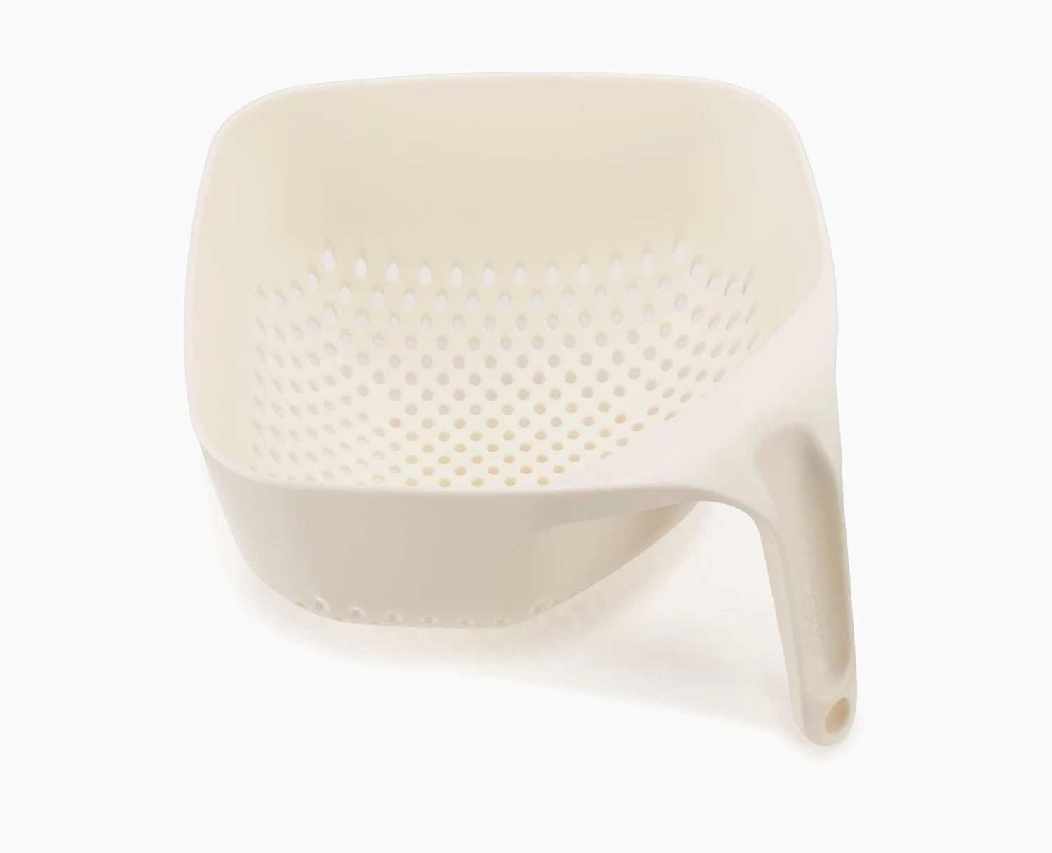 This stylish, functional square colander makes draining your food even easier with its unique ergonomic shape and vertical handle that keeps it upright and stable when set down.