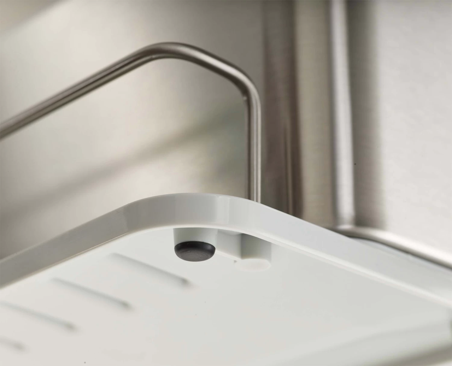 - Includes separate brush and bottle compartments and handy rail for drying wet cloths and sponges.
