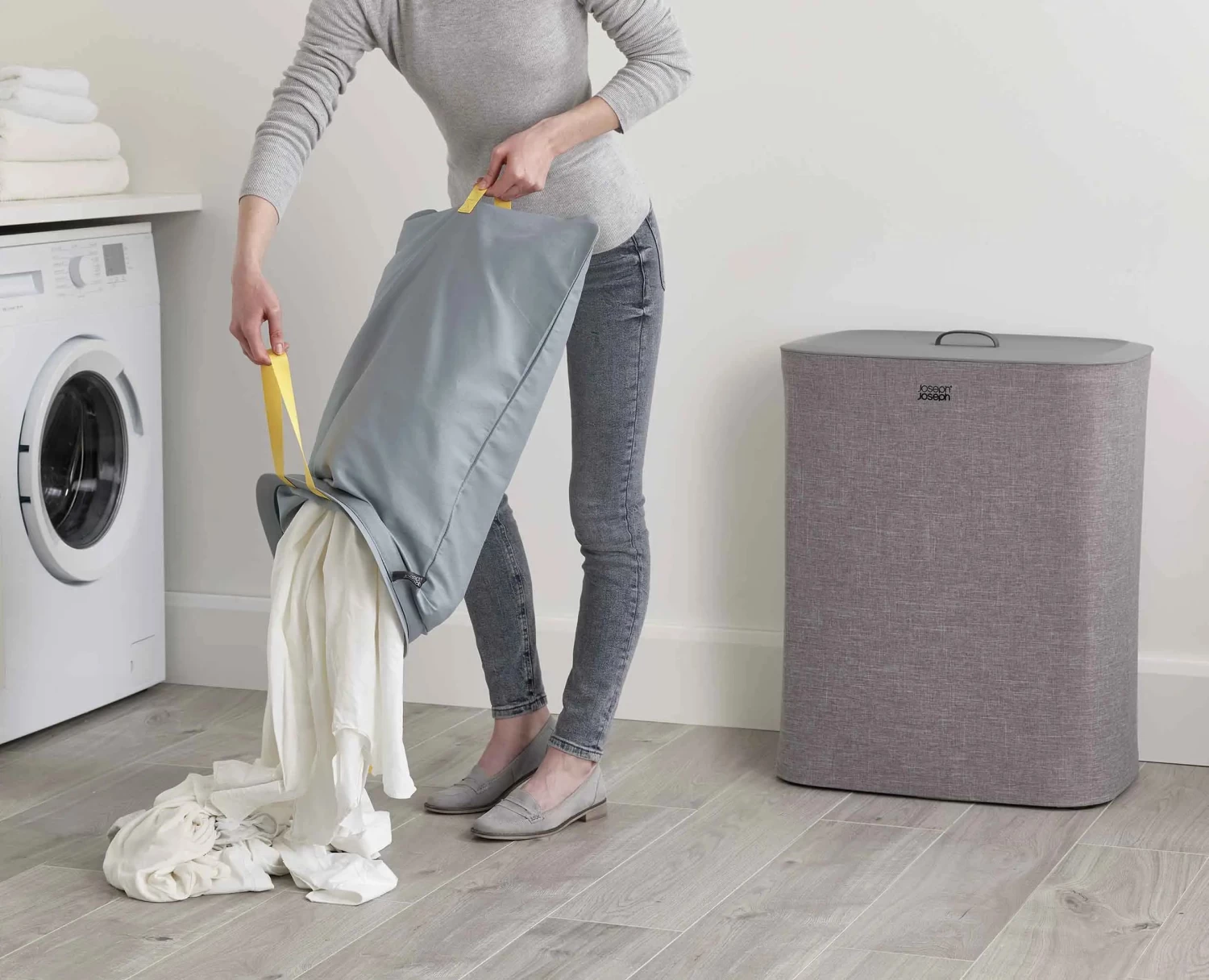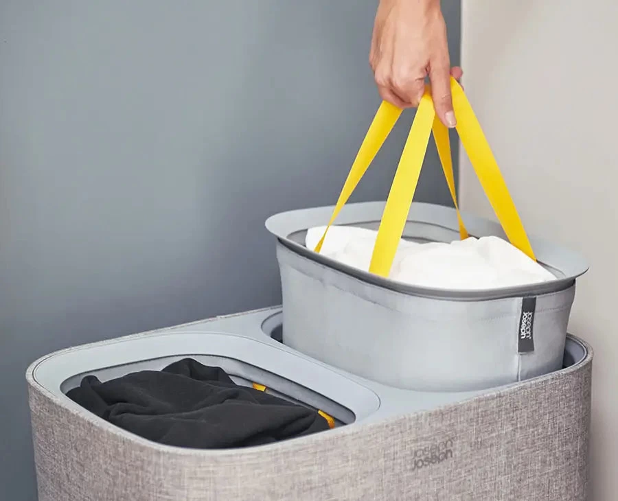 - Removable tote bags with handles makes carrying washing to the machine easy