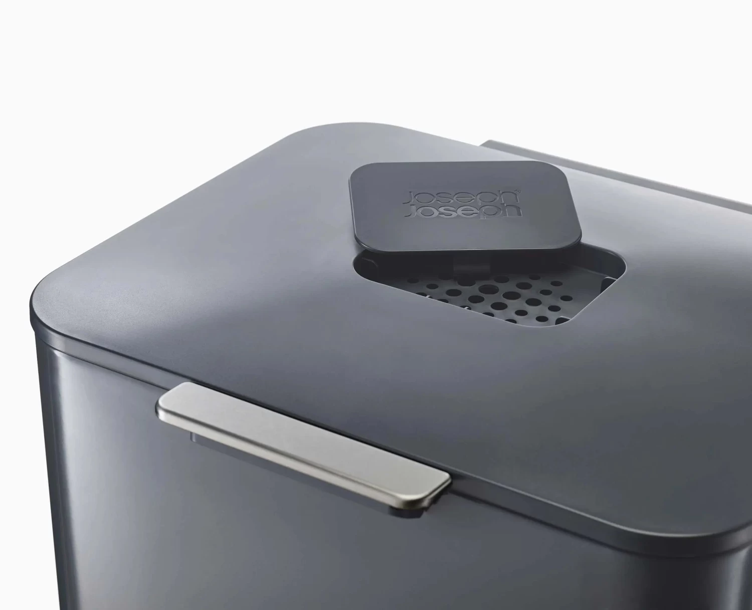 - Includes two 30-litre compartments for easier sorting of waste and recycling plus a 3-litre removable food waste caddy